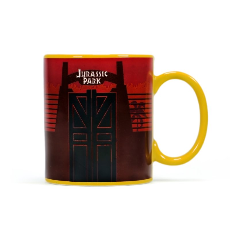 Add a little suspense to your morning brew with this Jurassic Park gates heat change mug.
