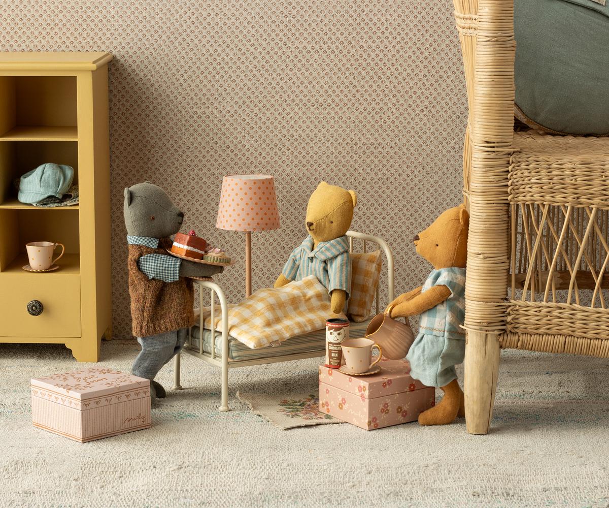 This pretty hot chocolate set is perfect for the Teddy Family to use when they are sat round the table to drink steaming cups of delicious hot chocolate. 2 lovely pink and gold spot teacup with saucers, a pink and gold jug and a box of hot chocolate are included in the set which is packaged in a beautiful pink floral box.